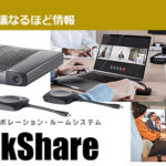 いかがですか? 会議中の資料表示に、テレビ会議の資料共有時に、シンプルかつ使い勝手の良いClickShare! この様な資料表示機器は他のメーカーさんからも発売されていますが、アプリをインストールしなければいけなかったり、ネットワーク経由で操作しなければいけなかったりと、結構ハードルが高かったのですが、ClickShareであれば全ての問題を一気に解決してくれますね!
