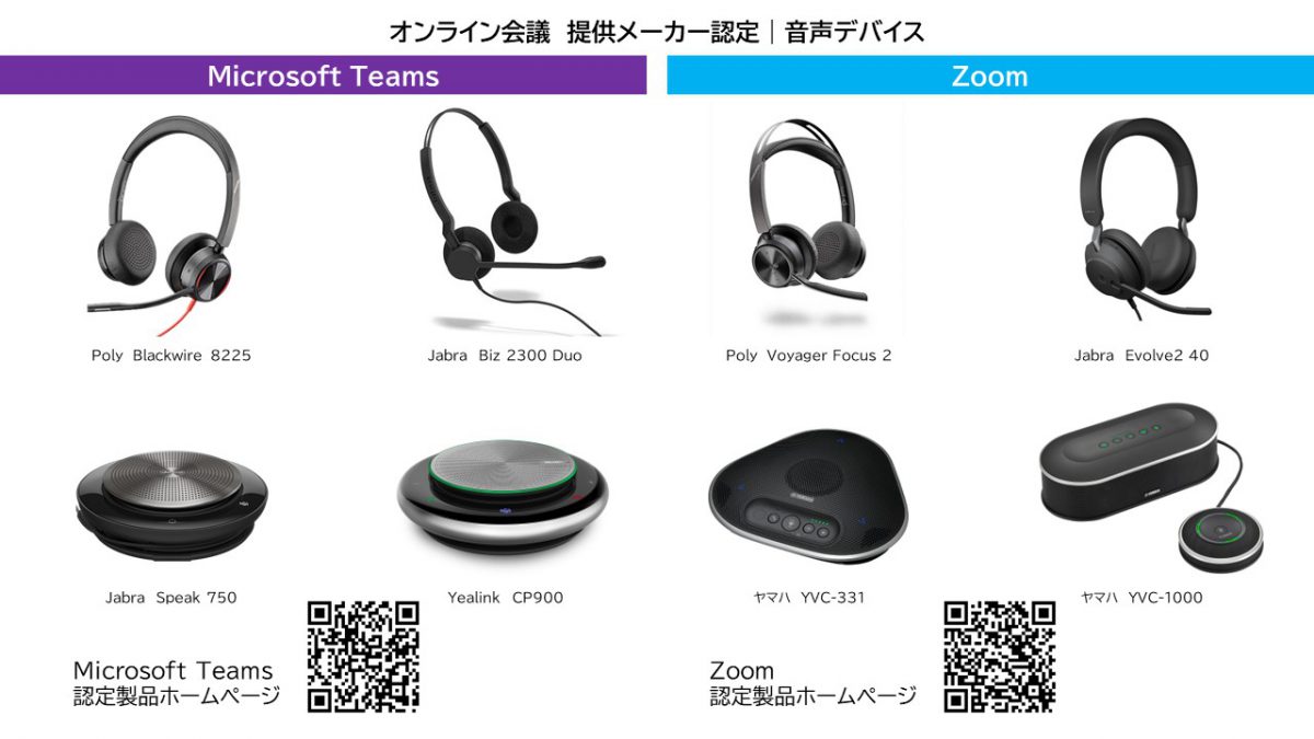 音声デバイスはオンライン会議メーカーが認定しているデバイスを利用する