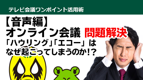 オンライン会議でよく発生する代表的な音声トラブルが「音が回る、音が返ってくる」です。会議中に“キーン”という高音が鳴ったり(ハウリング)、話者の声が反響して聞こえる(エコー)場合は、この現象が起きている可能性が高いです。